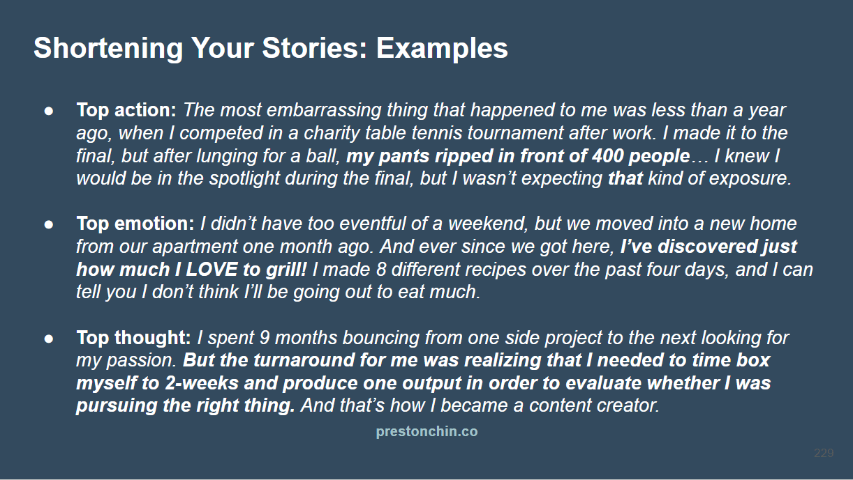 Step 2: If you’re talking to a bigger or more casual group, tell a quick story.