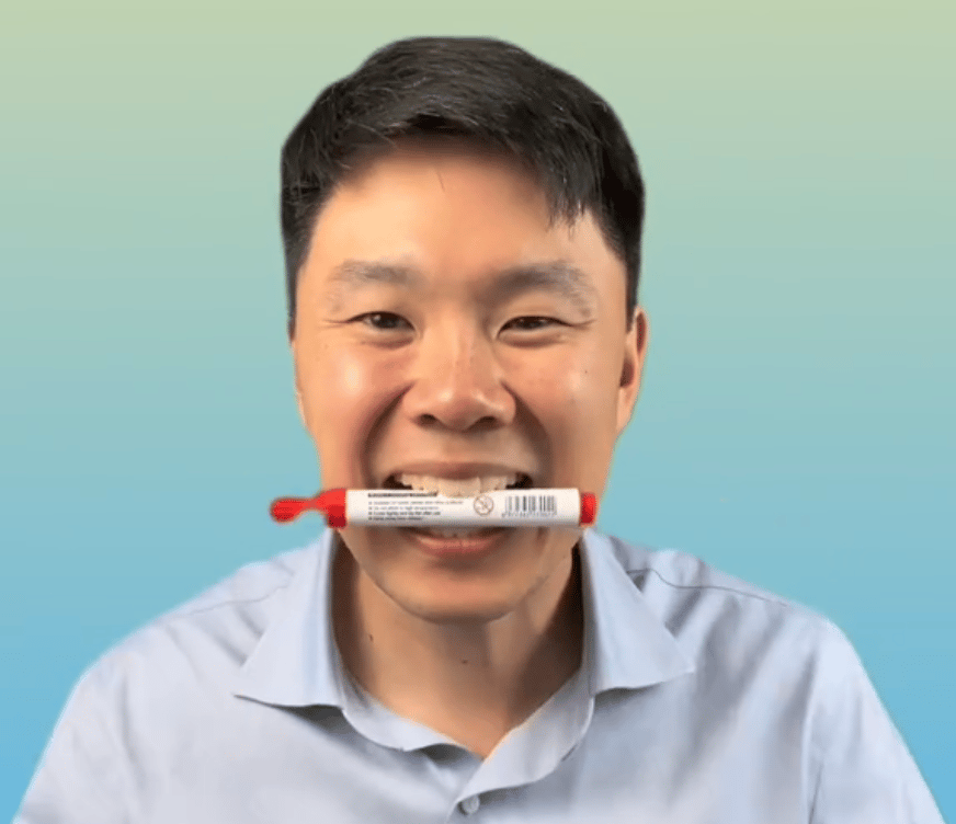 One quick note: if forcing a smile feels unnatural, practice the Duchenne Smile at home. The Duchenne Smile is a natural smile where you’re smiling with your eyes. You can practice this in private by putting a pen or pencil in between your teeth, creating a crease by the sides of your eyes.